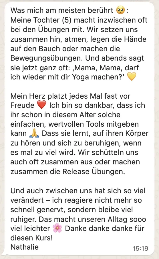 Du wirst ruhiger, klarer und präsenter – in Gesprächen, mit deinem Partner, mit deinen Kindern, mit dir selbst.